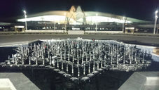 In our Turkmenistan Ashgabat International Airport project, the ornamental pools to be located at the main terminal entrance were also designed within this scope. The Main Terminal section of this award-winning airport was designed in the shape of a Lachin Bird, unique to Turkmenistan. The main terminal pools fill the front entrance of the airport with a design as if the main terminal building, with its two arms or wings open, embraces the ornamental pools. The pools show themselves from every angle with their strong water effects. In fact, the area where the ornamental pools are located and their strong lights make them stand out, especially at night, in a way that they can be seen very clearly from the planes taking off and landing.